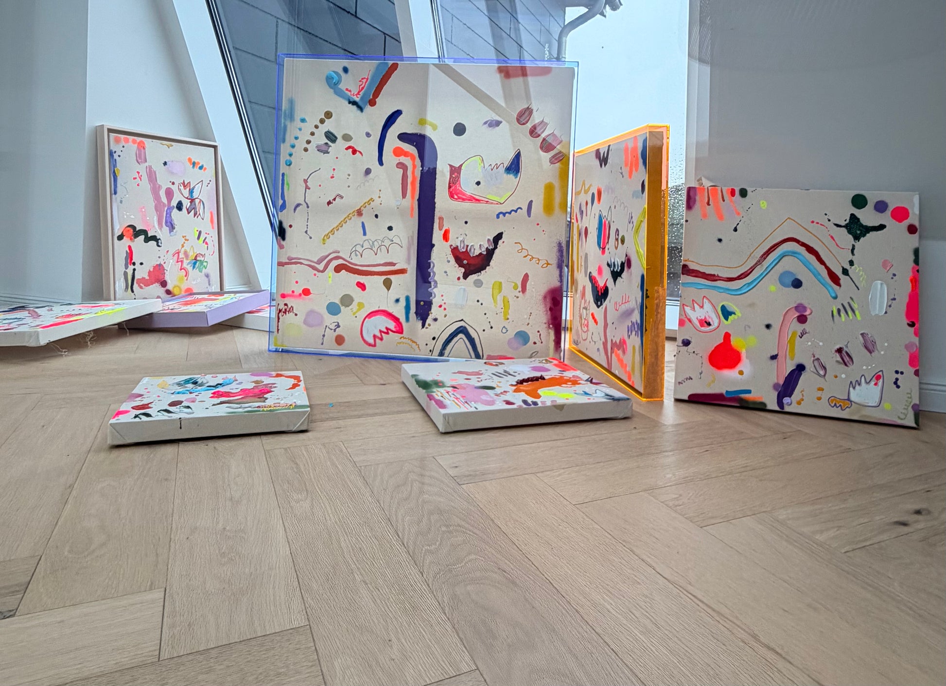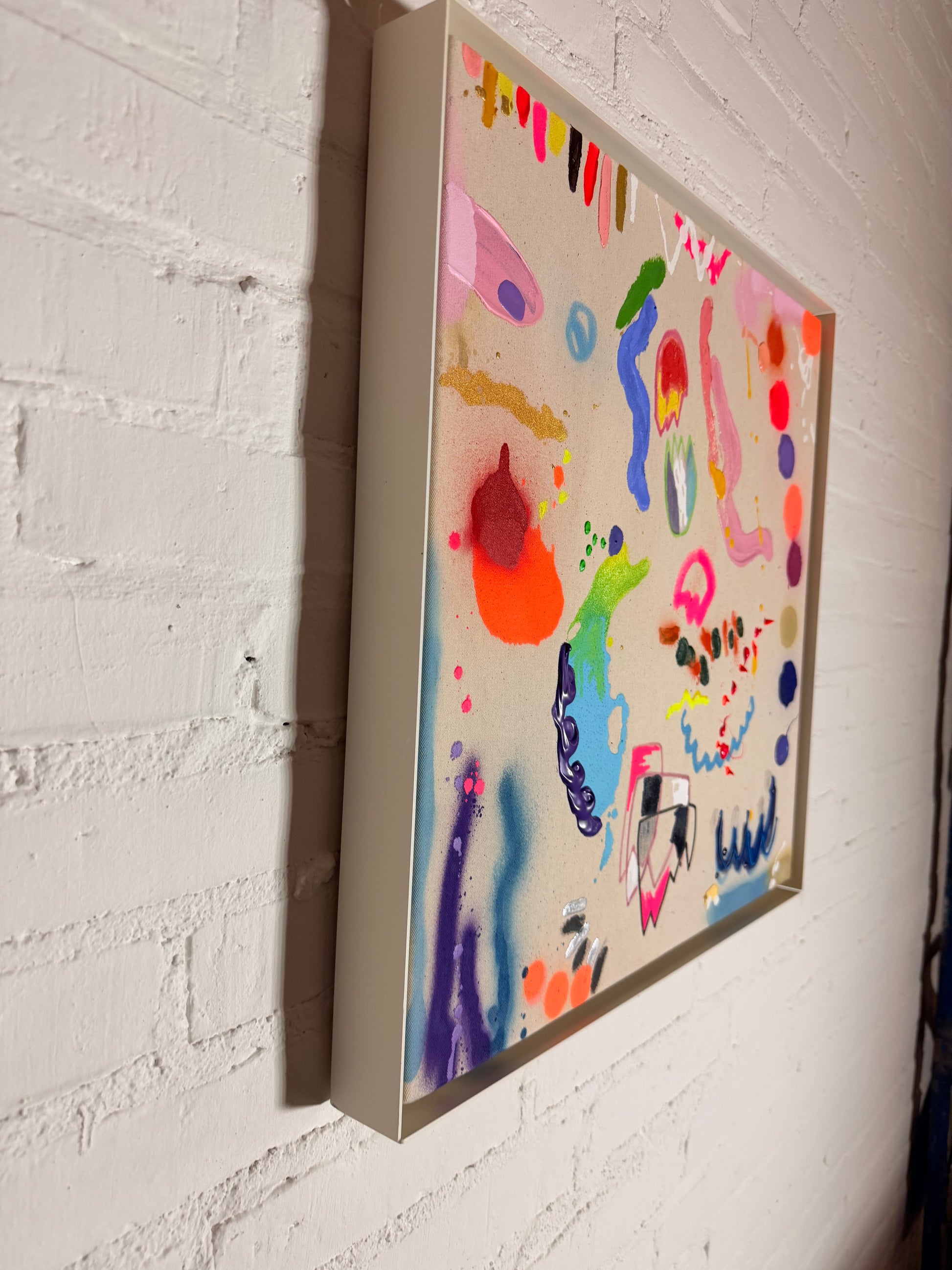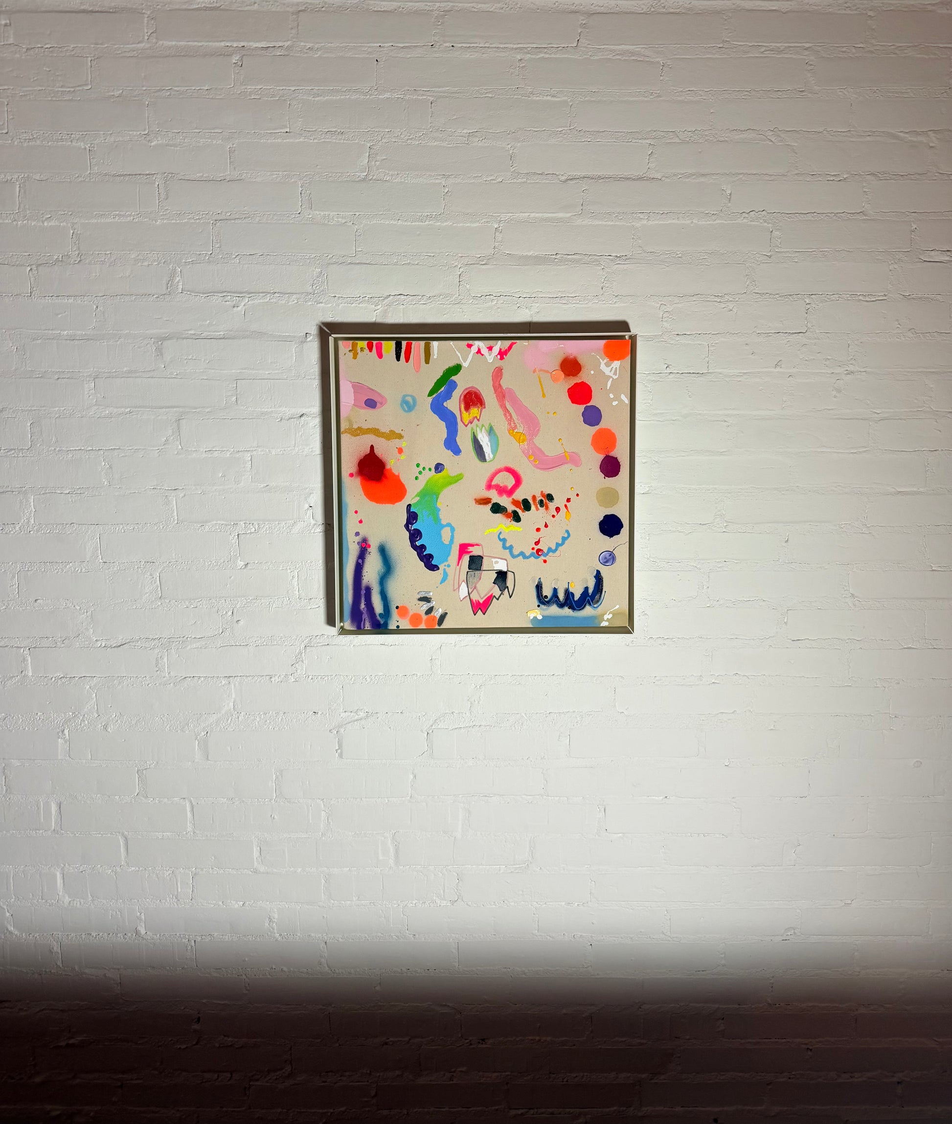 50cmx50cm auf leinwand im weißen stahlrahmen. acryl, kreide, spray.